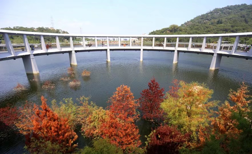 Autumn arrives in Xiamen, Fujian province, with bald cypresses turning red and yellow near Dongshan mountain. [Photo by Chen Bo/Provided to chinadaily.com.cn]