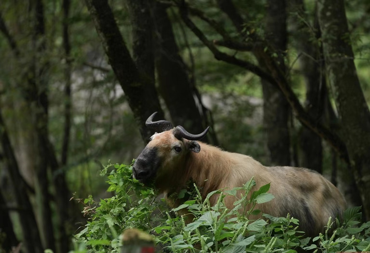 A field research conservation center established in Tangjiahe has tracked takin groups, the largest wild herbivore in the area, for 10 years. It has found that the population of this national first-class protected species has increased to 1,300.