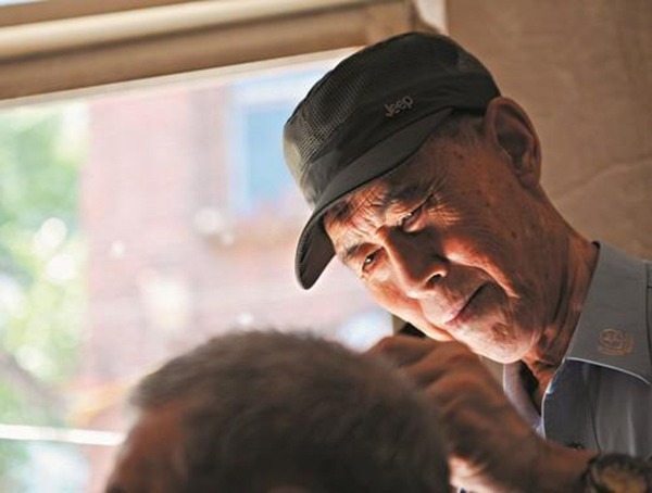 "I had learned some basic skills of haircutting in my youth and helped my comrades-in-arms cut their hair in the military between 1964 and 1968," he said. After leaving military service, he became a traffic officer in Taiyuan and continued to cut hair.