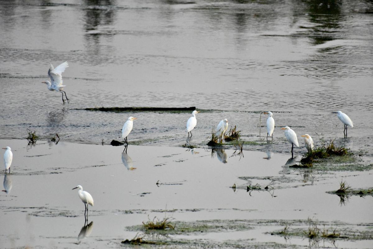 A flock of egrets roost in the Yanghe wetland on Saturday. [Photo by Chen Xiaodong/For chinadaily.com.cn]