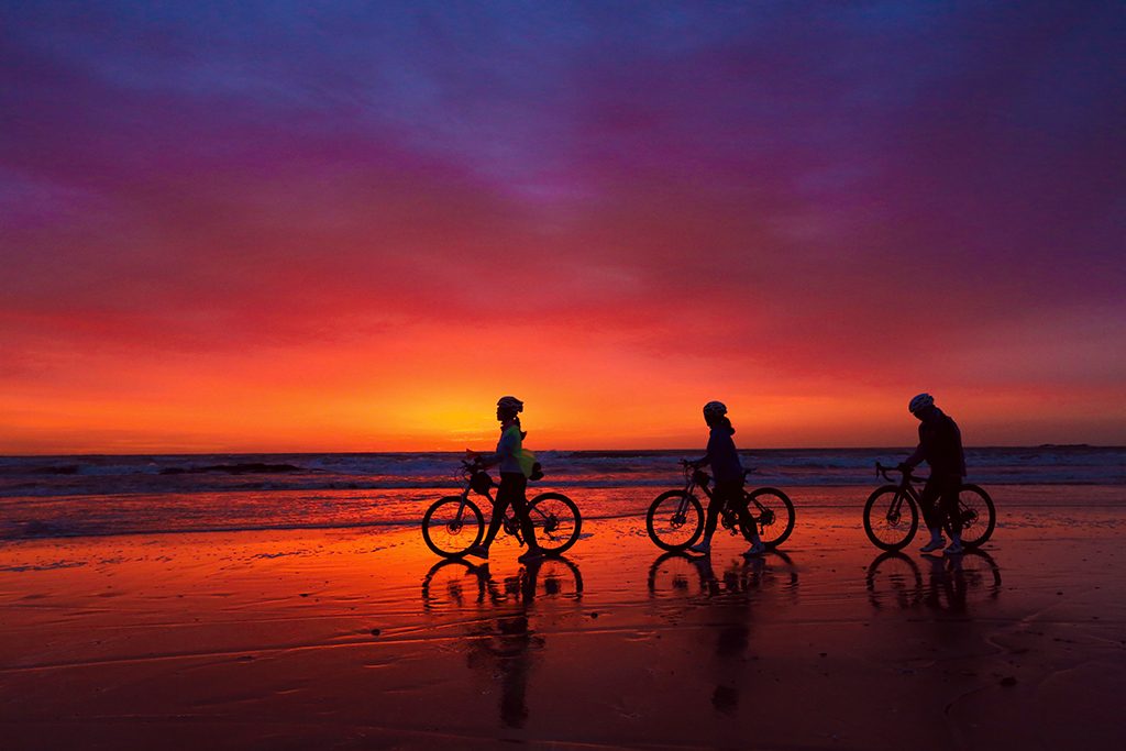 Gorgeous seaside sunrise scenery in Rizhao, Shandong province draws residents to go biking. [Photo/IC]