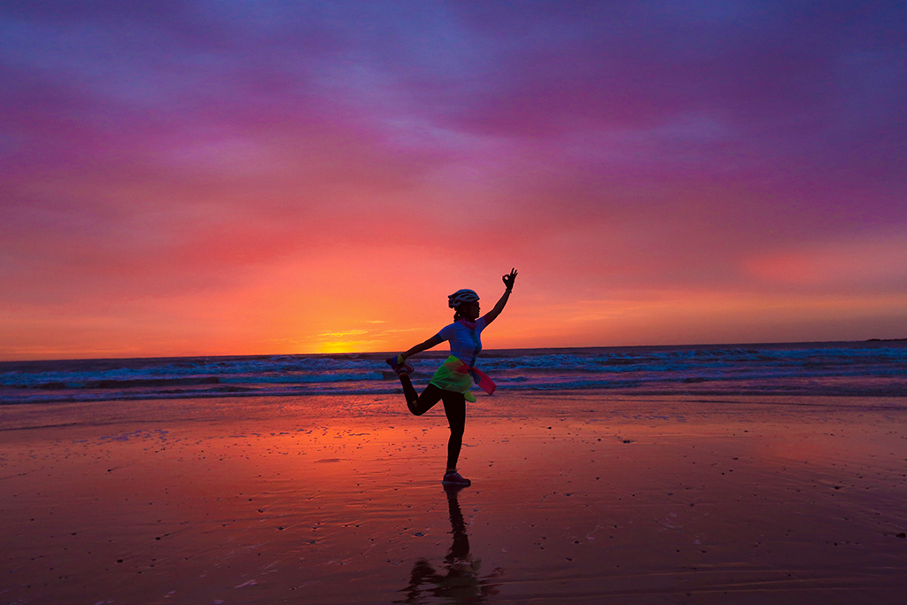 Gorgeous seaside sunrise scenery in Rizhao, Shandong province draws a woman to do her exercise. [Photo/IC]