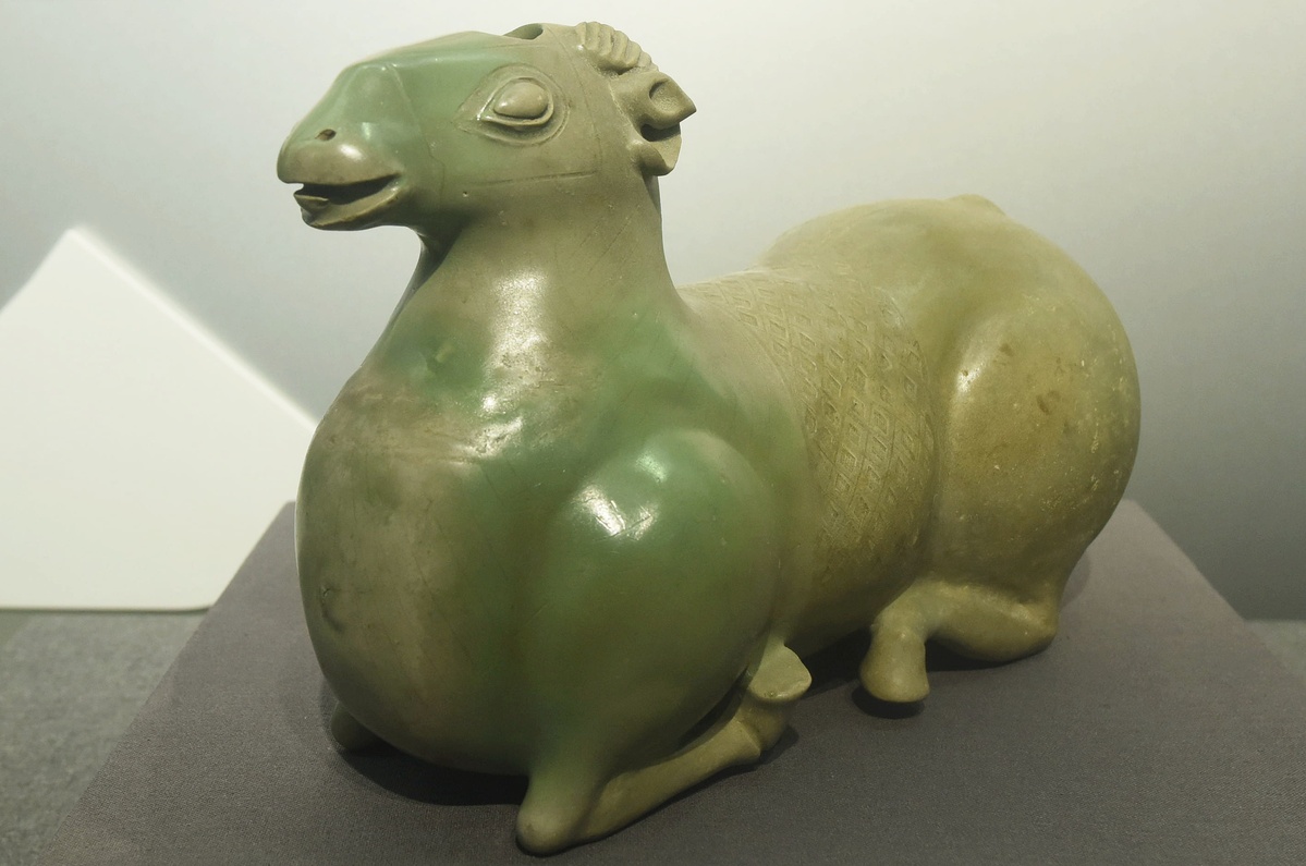 A celadon sheep is on display at the Zhejiang Provincial Museum in Hangzhou. [Photo/VCG]