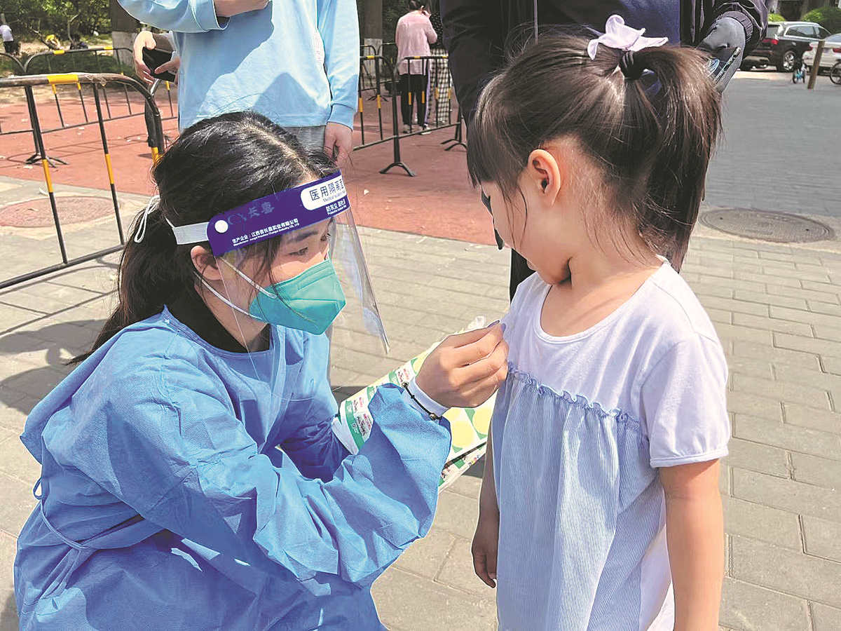 This year, Beijing resident Yuan Qianming has led volunteers to help keep crowds orderly at a nucleic acid testing station in a sports park in Wangjing, an urban area in the northeast of the capital's downtown that is home to about 6,000 foreign residents.