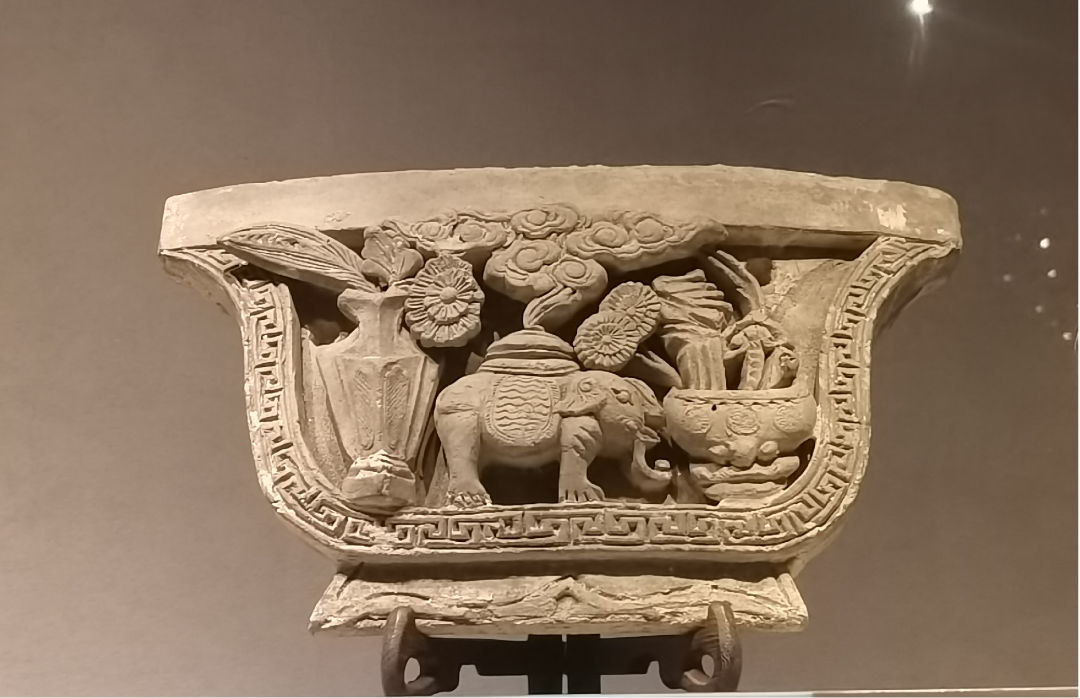 Brick carving of an auspicious sign made up of an elephant and a vase, Qing Dynasty, from the collection of the Anhui Museum [Photo/Official WeChat account of the Datong Museum]