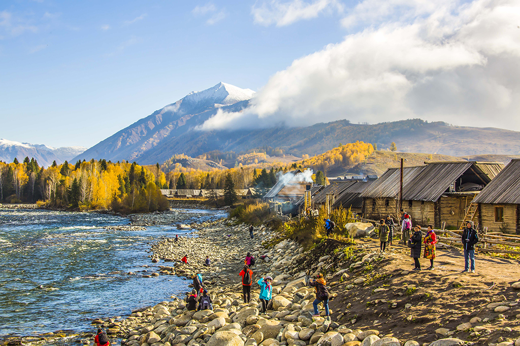 Visitors enjoy the morning autumn scenery of Hemu village, Burqin county, Northwest China’s Xinjiang Uygur autonomous region. [Photo/IC]