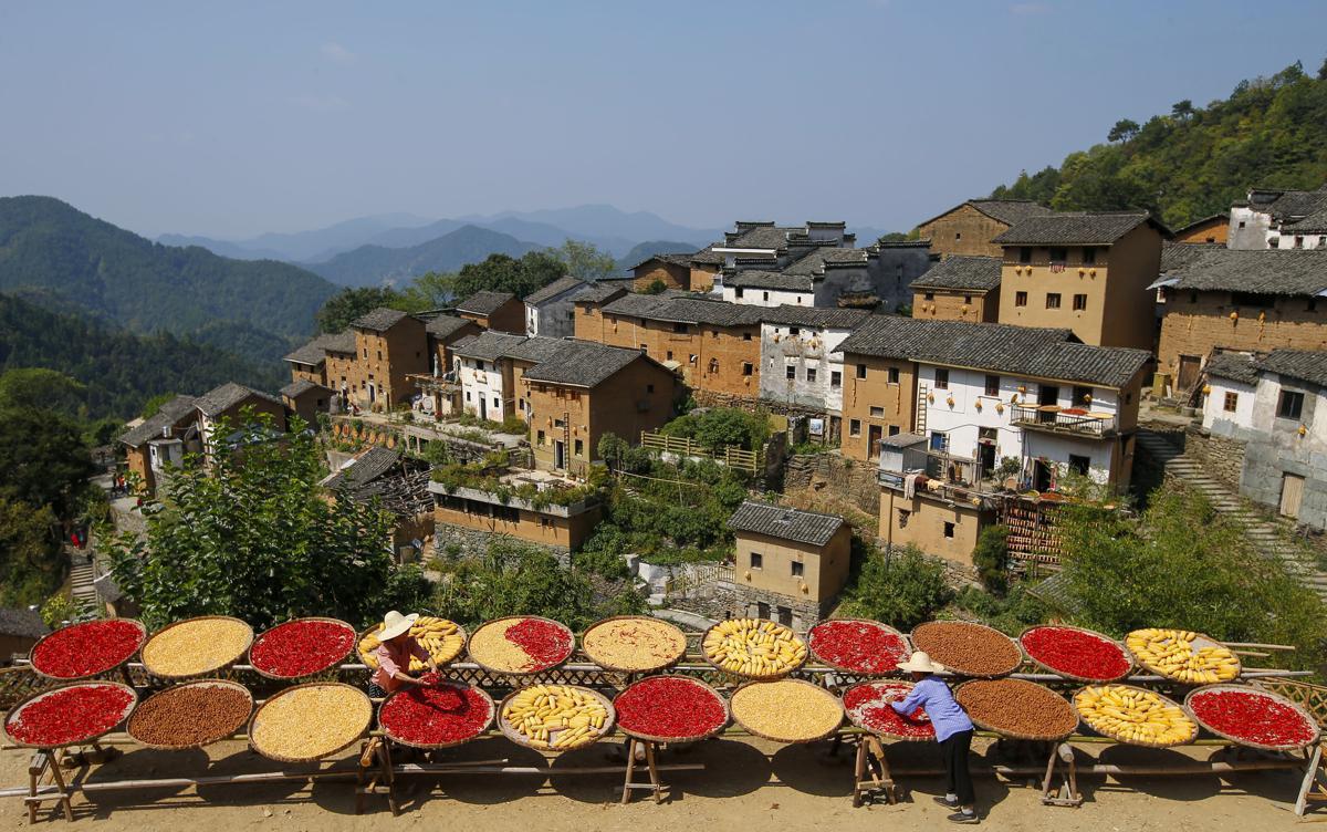 With approach of the autumn equinox, a traditional Chinese solar term, which falls on Friday this year, residents of Huangshan, Anhui province, are putting their agricultural produce in the sun to dry, creating splendid autumn views.