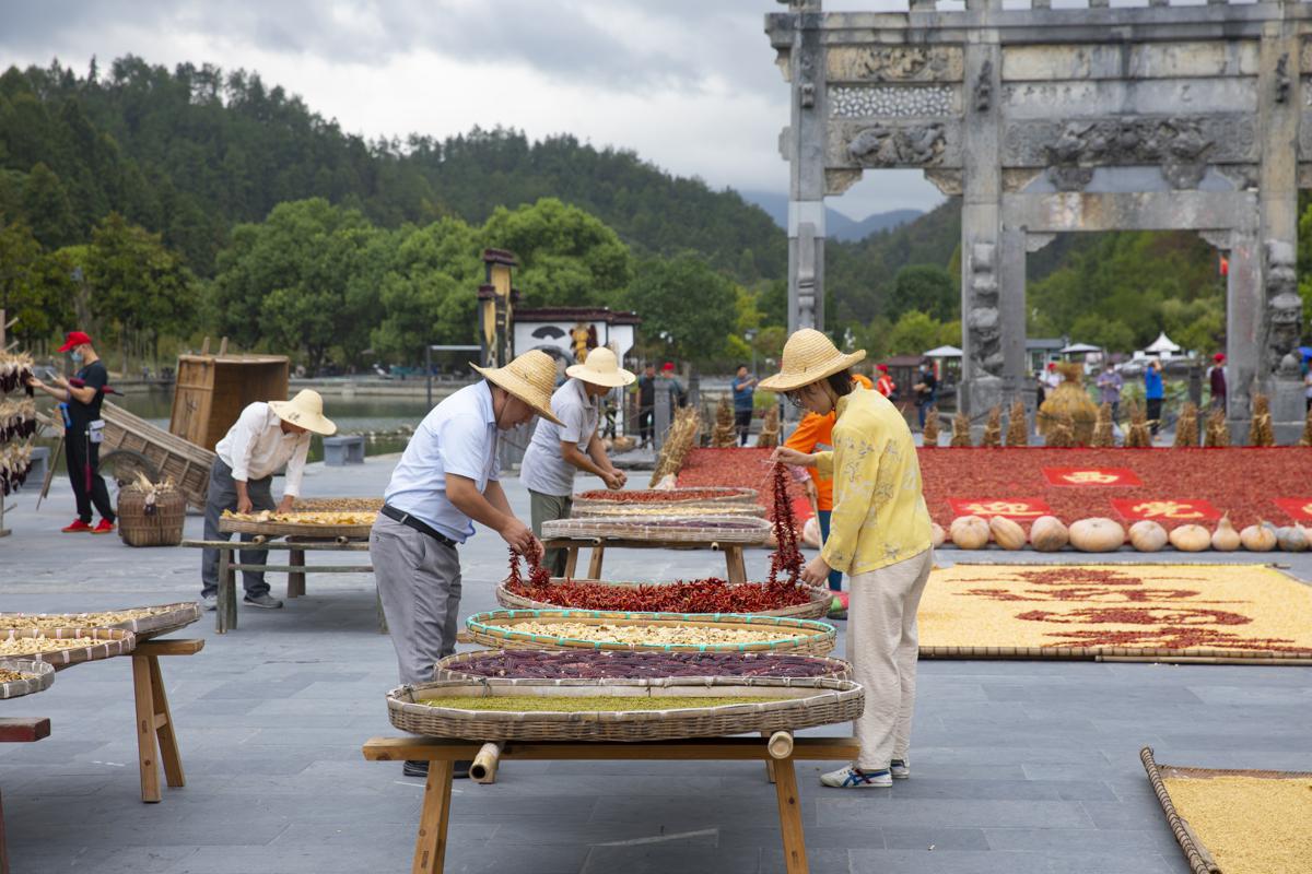 Rural residents put agricultural produce in the sun to dry in Xidi village of Huangshan, Anhui province. [Photo by Wang Hong/For chinadaily.com.cn]