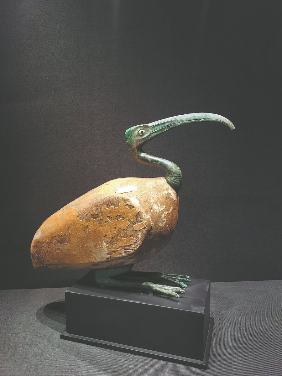 A stone statue of a mummified ibis is on display. [Photo by Huang Leran/China Daily]