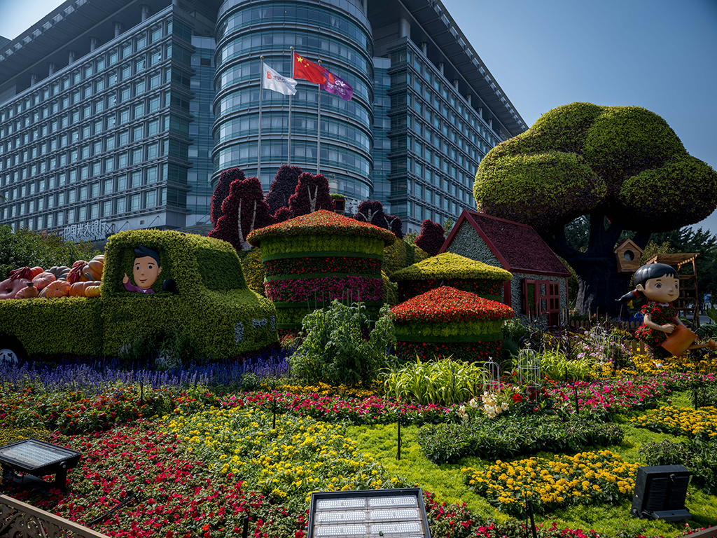 Flowerbeds adorn Beijing’s main thoroughfare to celebrate National Day