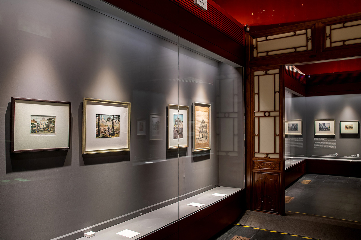 Various paintings depicting the architecture of Macao’s historical districts are on display at the Hall for Abstinence (Zhai gong) of the Palace Museum. [Photo/dpm.org.cn]