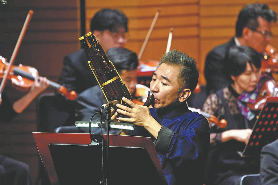 Sheng player Wu Tong attended the concert to celebrate the 25th anniversary of the Beijing Music Festival on Saturday. [Photo provided to China Daily]