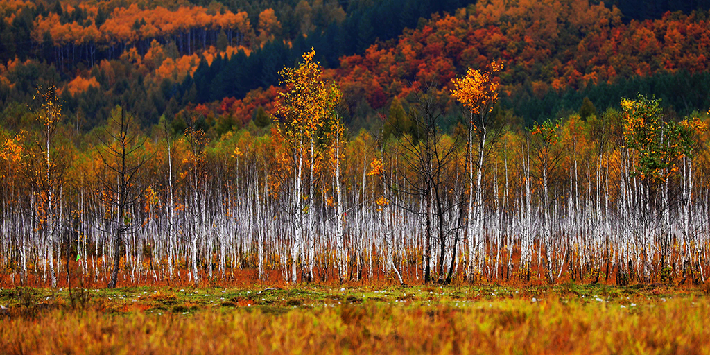 What gorgeous autumn scenery in Hulunbuir, North China’s Inner Mongolia autonomous region! The vast grasslands and vibrant forests turn orange and red, resembling a painter’s palette that nature has accidentally overturned.