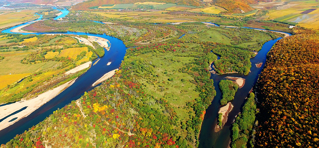 Hulunbuir in North China’s Inner Mongolia autonomous region in autumn red and orange, with a touch of blue. [Photo by Jiang Xiwu/provided to chinaservicesinfo.com]