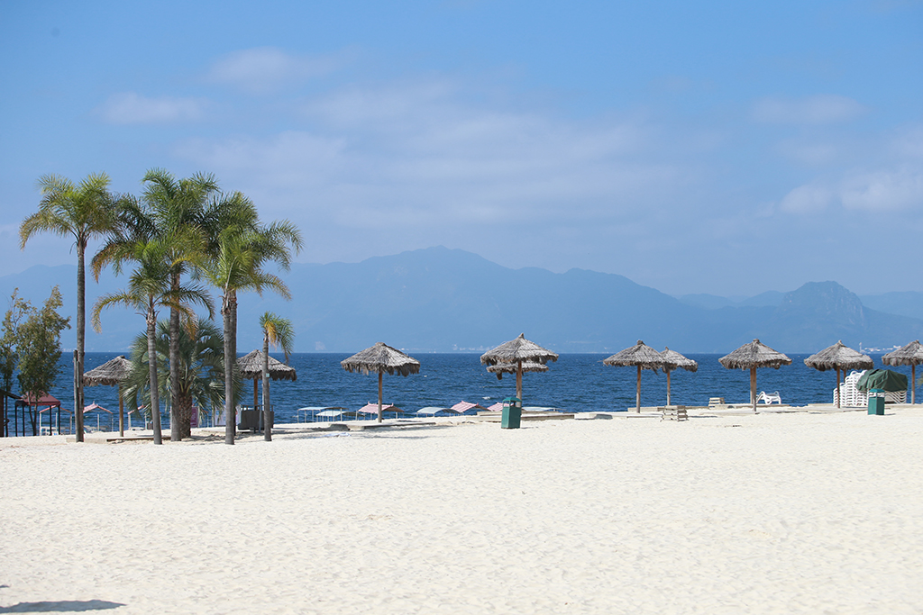 Fuxian Lake in Yunnan province complements the sliver beach and lofty coconut trees. [Photo/IC]
