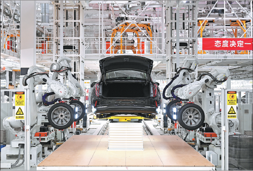 An assembly line of Hongqi, a high-end sedan brand of China FAW Group, in Changchun, Jilin province. [YUAN JIGANG/FOR CHINA DAILY]