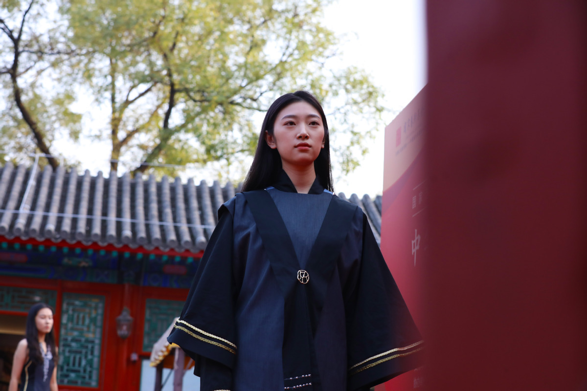 Models present traditional Chinese costume works at an exhibition held in Beijing, Sept 26, 2022. [Photo by Zhu Xinxing/China Daily]