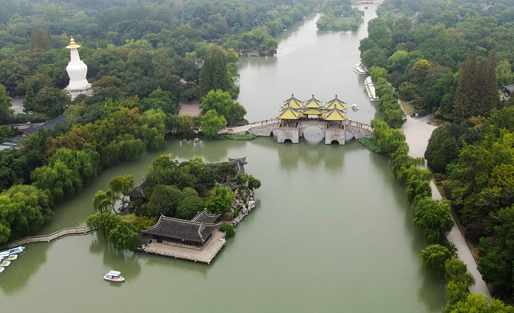 Aerial view of the Slender West Lake scenic area in Yangzhou, Jiangsu province [Photo/IC]