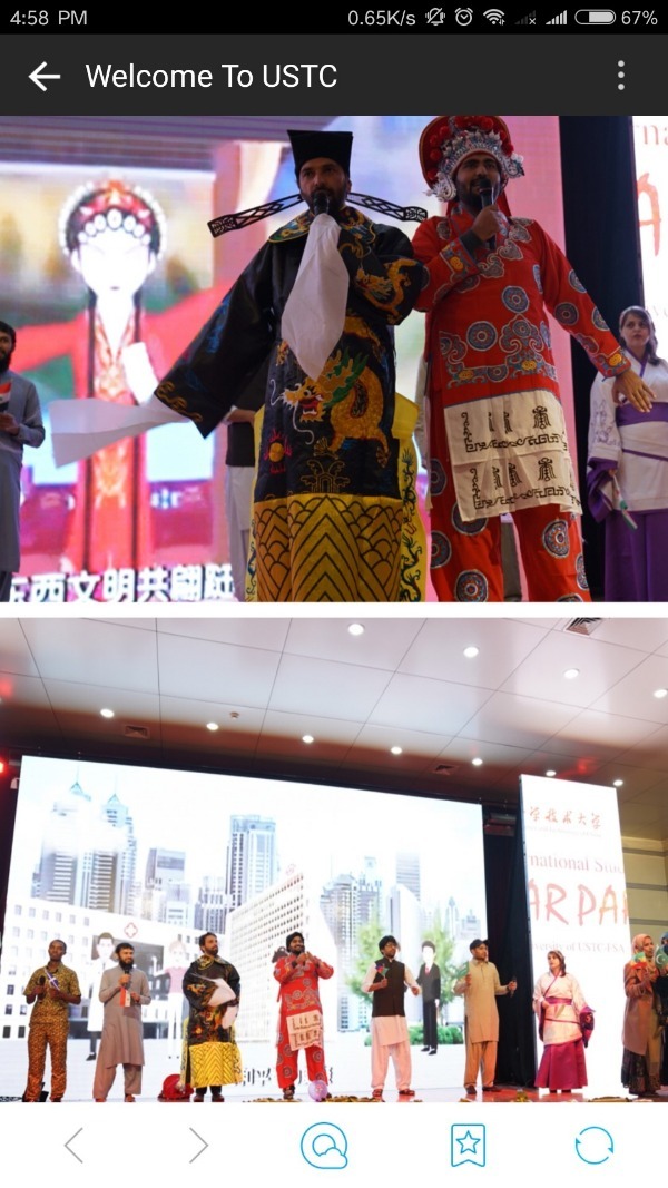 USTC arranged Sino Foreign Cultural Exchange Festival to make foreign students feel at home and where they can celebrate their culture by of wearing cultural dresses, traditional dancing and presenting traditional dishes of their respective countries. Chinese female students also performed western dance on the stage along with other performances. I felt proud to present my cultural dress and dance on stage in front of Chinese and international students.