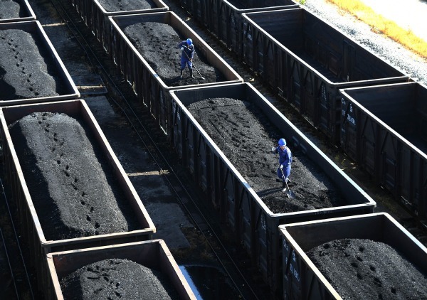 Workers shovel coal at a railway section in Jiujiang, Jiangxi province. HU GUOLIN/FOR CHINA DAILY