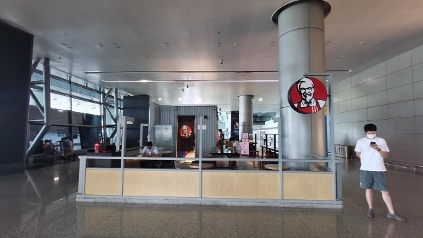 A man checks his cellphone in a dimly lit KFC at Shuangliu International Airport in Chengdu, Sichuan province on Tuesday. [Photo by Huang Leran/For chinadaily.com.cn]