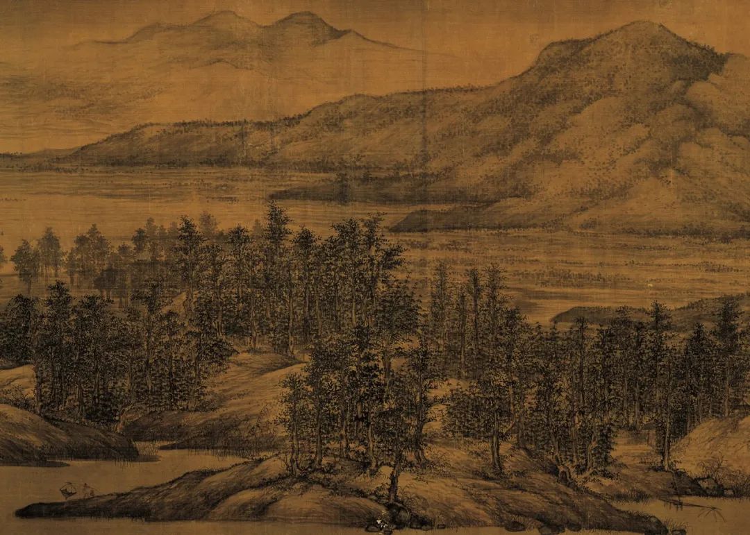 Waiting for a Ferry at the Foot of the Mountains in Summer, Dong Yuan (董源), Five Dynasties (907-960), ink and color on silk [Photo/Official WeChat account of the Liaoning Provincial Museum]