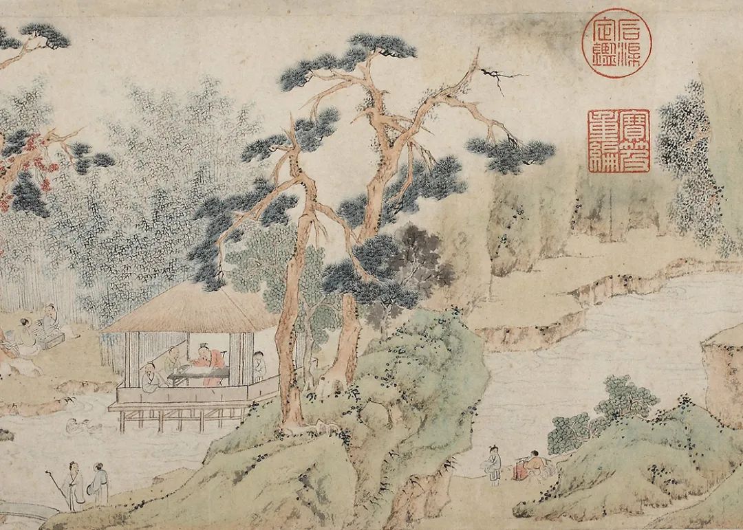 Preface to and Illustration of the Orchid Pavilion Gathering, detail, Zhu Yunming (祝允明) and Wen Zhengming (文徵明), Ming Dynasty (1368-1644), ink and color on paper [Photo/Official WeChat account of the Liaoning Provincial Museum]