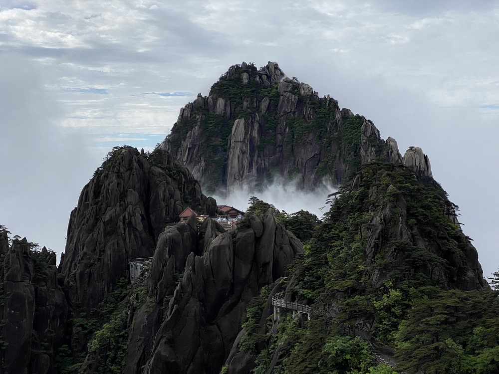 When my wife and I climbed the Xihai scenic area early morning, the weather was not promising. But after almost two hours on our way up to the peak we saw this stunning scenery. Slowly, the fog in the cauldron was lifted by thermal winds, and just a moment later it completely disappeared. Luckily I got the chance to shoot this perfect picture. I was constantly looking out for the witch on her broom approaching the cauldron.