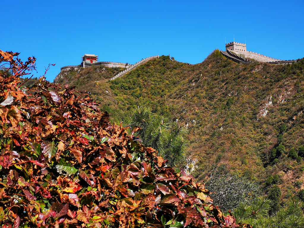 Juyongguan Great Wall amid red maple trees is an autumn delight