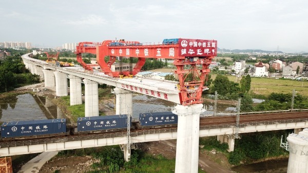 A file photo shows the construction site of the high-speed railway line linking Huzhou and Hangzhou in East China's Zhejiang province. China Railway No 5 Engineering Group Co Ltd took charge of the construction at the section. [Photo provided to chinadaily.com.cn]