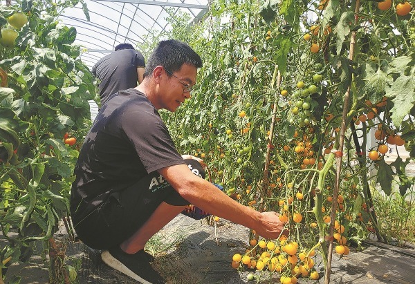 Inside a greenhouse base in Tuanshi, a village in Longyou county in East China's Zhejiang province, 39-year-old Wang Weibo carefully examined the growing conditions of different varieties of cherry tomatoes. They would soon be ripe and ready for picking.
