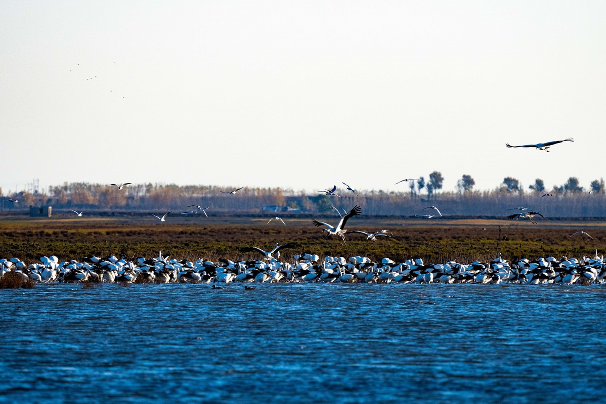 "It's the largest flock of oriental white storks we have ever encountered in the reserve over several decades," said Pan Shengyu, a staff member at the China Wildlife Conservation Association in Baicheng. "Due to the abundant precipitation in Northeast China this year, the birds can easily find food in the reserve, including various fish, shrimp and snails."