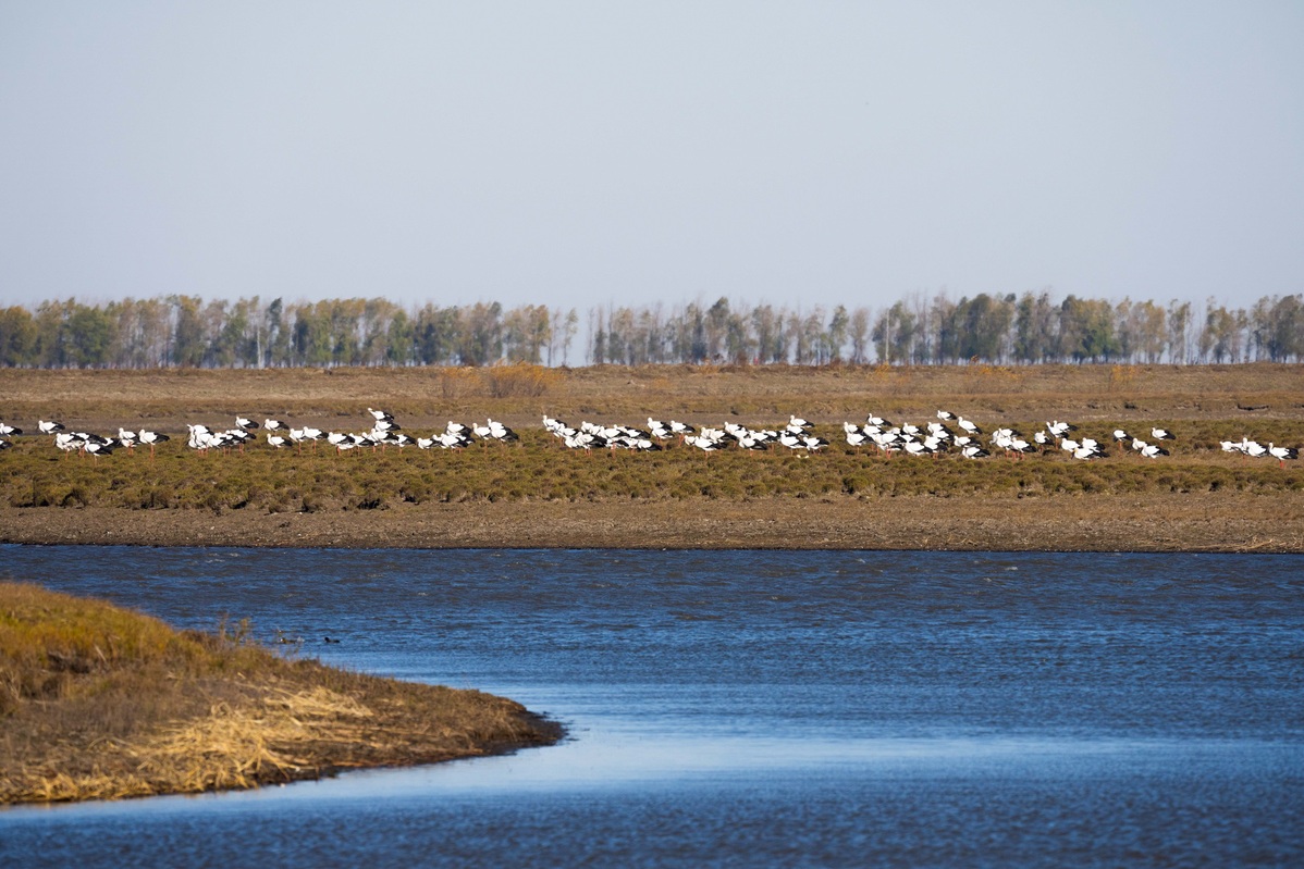 "It's the largest flock of oriental white storks we have ever encountered in the reserve over several decades," said Pan Shengyu, a staff member at the China Wildlife Conservation Association in Baicheng. "Due to the abundant precipitation in Northeast China this year, the birds can easily find food in the reserve, including various fish, shrimp and snails."