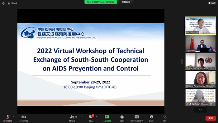 A Virtual Workshop on Technical Exchange of South-South Cooperation on AIDS Prevention and Control was organized by the National Center for AIDS/STD Control and Prevention of the China CDC from Sept 28 to 29.