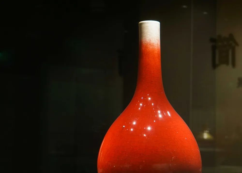 Detail of a red-glazed vase, Qianlong reign (1736-1795) of the Qing Dynasty (1644-1911) [Photo/Official WeChat account of the Shunde District Museum]