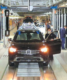 Workers assemble vehicles at a Mercedes-Benz plant in Beijing E-Town. CHINA DAILY