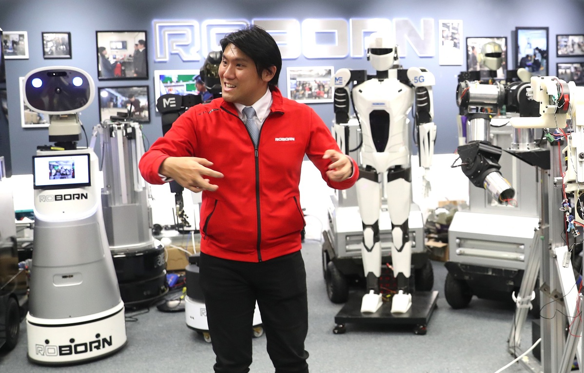 Mak Hin-yu, who was born in Hong Kong in the 1980s, introduces his robot on June 10. Mak and his team independently developed and produced China's first 5G motion-sensing bionic robot. [Photo by ZOU HONG/chinadaily.com.cn]