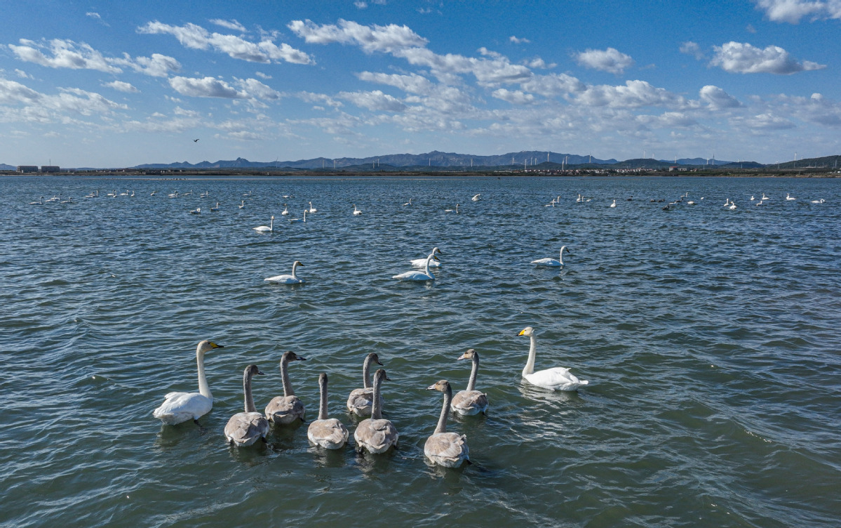 A photo shows whooper swans at Rongcheng Swan National Nature Reserve in Weihai, Shandong province. [Photos by Li Xinjun/For chinadaily.com.cn]