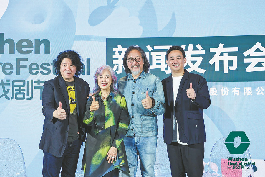 Founders of the festival Huang Lei (right), Stan Lai (second from right) and Meng Jinghui (left), together with the festival's executive director Ding Nai-chu (second from left), gathered at a news conference on Sept 29 in Beijing. [Photo provided to China Daily]