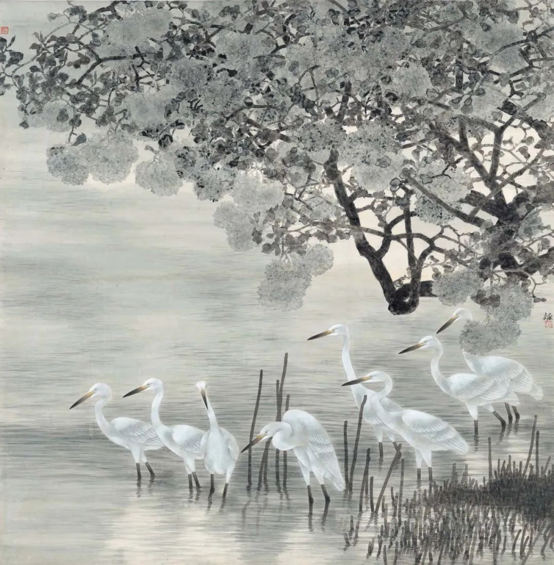 Traditional Chinese painting depicting river scenery in spring by Chen Wenli [Photo/Official WeChat account of the Guizhou Art Museum]