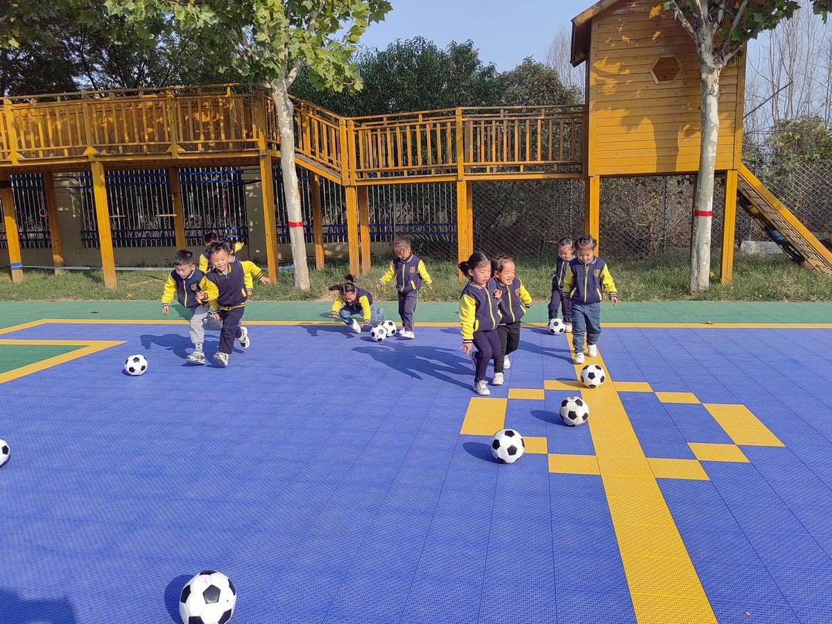 Students at Fenghuang Art Kindergarten in Quzhou county of Handan, Hebei province, play soccer. [Photo by Bai Liying/For chinadaily.com.cn]
