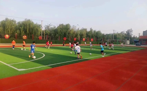 Students at Qianhedong Primary School in Quzhou county of Handan, Hebei province, play soccer. [Photo by Bai Liying/For chinadaily.com.cn]