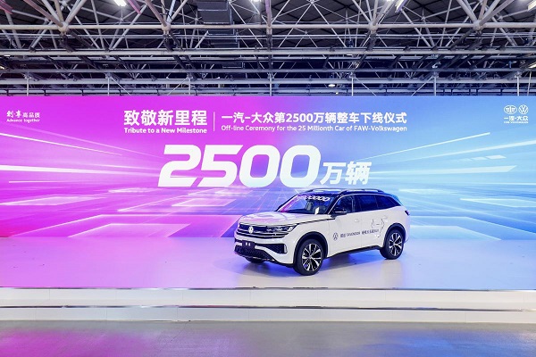 As a white sport utility vehicle slowly rolled off the production line at a general assembly workshop at the Changchun base of Sino-German joint venture FAW-Volkswagen Automobile Co on Monday, the company announced that it had produced 25 million vehicles since operations began in Changchun, Jilin province, in 1991.