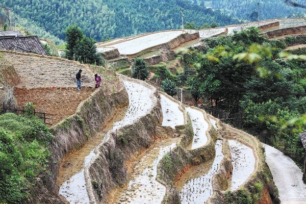 Construction of the terraces began around the time of the Qin (221-206 BC) and Han (206 BC-AD 220) dynasties, and they have developed into a sophisticated and sustainable irrigation network. The average grain harvest per mu (0.067 hectare) of the terrace has reached over 500 kilograms.