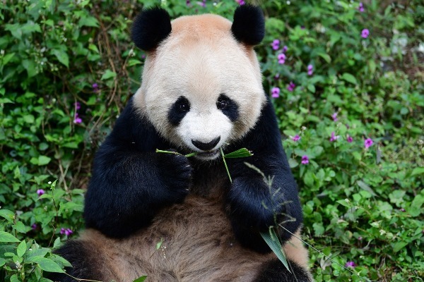 A photo shows Jing Jing, a four-year-old male panda, eating food at Ya'an panda base in Chengdu, Sichuan province. [Photo by Li Chuanyou/For chinadaily.com.cn]