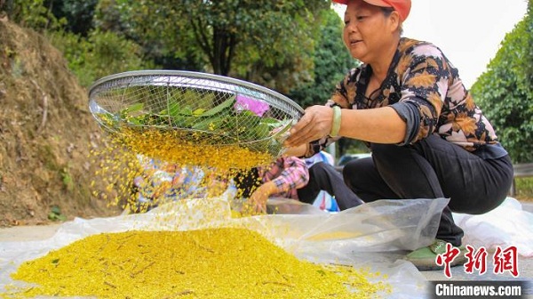 Being a sweet-scented osmanthus plantation area with long history, Lingui district has now formulated an industrial chain featuring plantations, collection, drying, and deep processing.