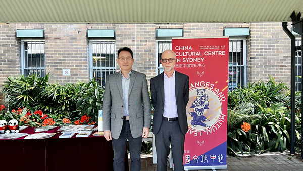 Xiao Xiayong (left), director of the tourism office and cultural center, and Timothy O’Leary, head of the School of Humanities & Languages at UNSW, at the event. [Photo provided to Chinaculture.org]