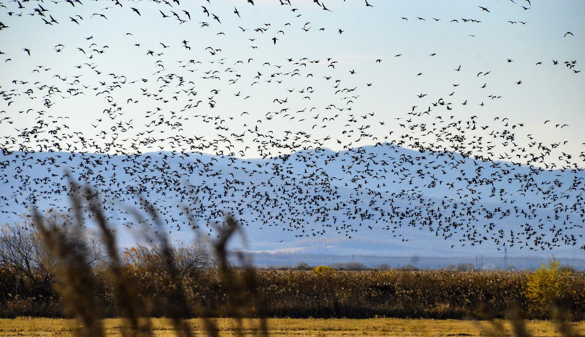 Photographers captured the spectacle of tens of thousands of birds in flight or busy searching for food — or just relaxing — as the birds prepared to continue their long seasonal journey southward.