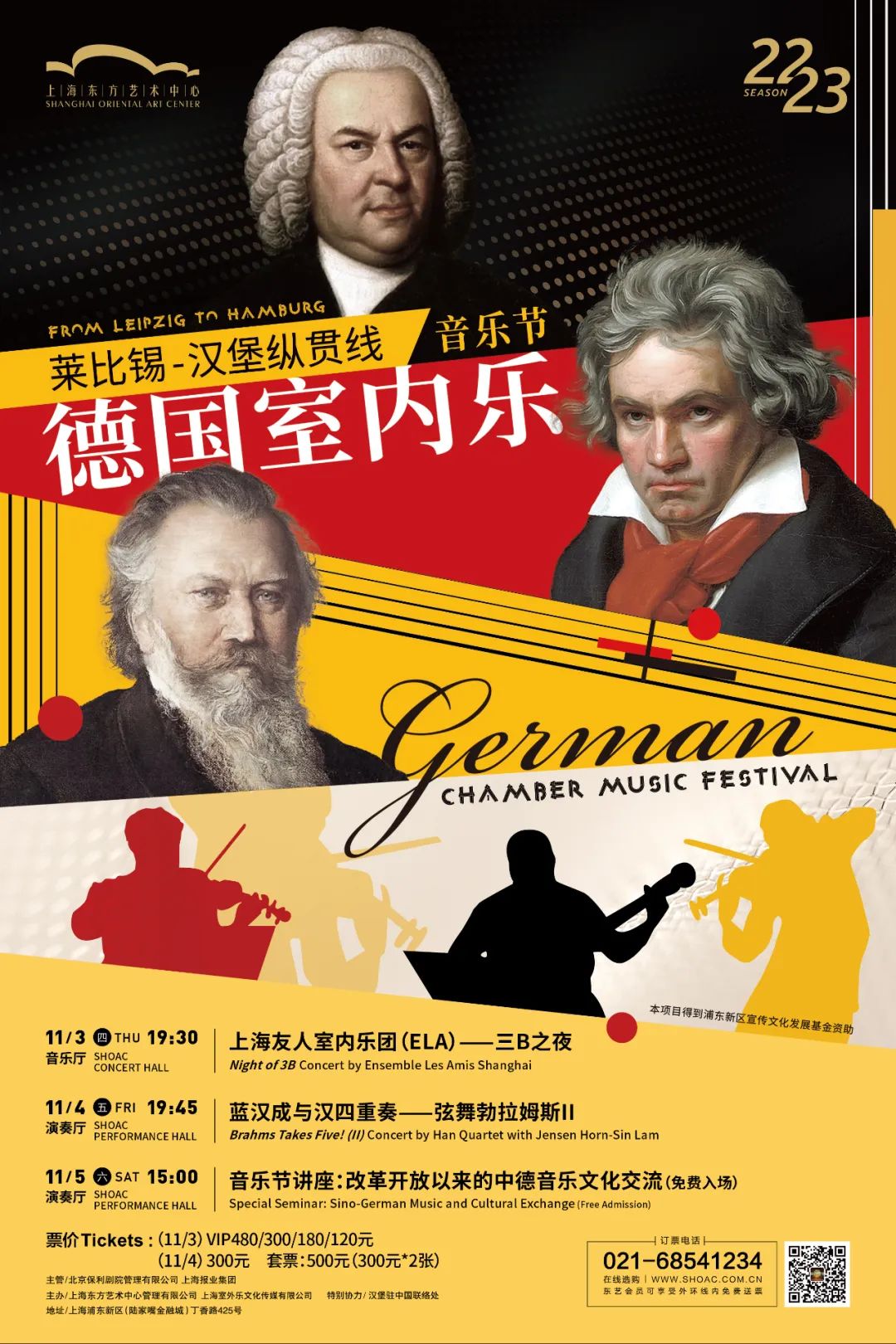 Classical music fans alert! The German Chamber Music Festival will be held at the Shanghai Oriental Art Center on Nov 3 through 5. In addition to a lecture, it will include two concerts featuring chamber pieces by Brahms, Schumann, Beethoven and Bach. Stay tuned!