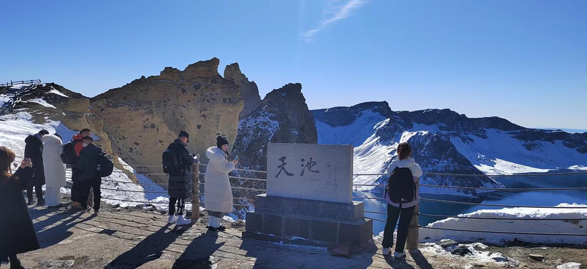 Tourists take photos of Tianchi Lake, which is located in the top of the volcanic cone of the main peak of the mountain in Jilin province. [Photo provided to chinadaily.com.cn]